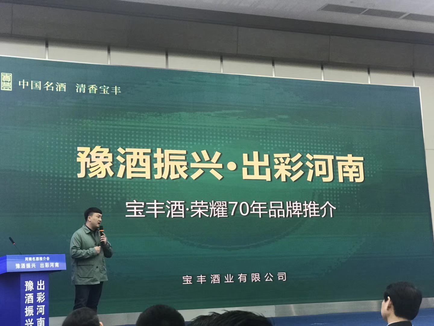 宝丰酒业有限公司销售公司总经理张伟皓以《宝丰酒-荣耀70年》为题,介绍了宝丰酒的辉煌历史、古法工艺、低温制曲、地缸发酵、清蒸二次清工艺、陶坛贮陈、宝丰酒的风采,天下美酒多,宝丰酒好喝。宝丰酒希望更多的朋友加入宝丰酒振兴发展的大业中来,共享发展财富。