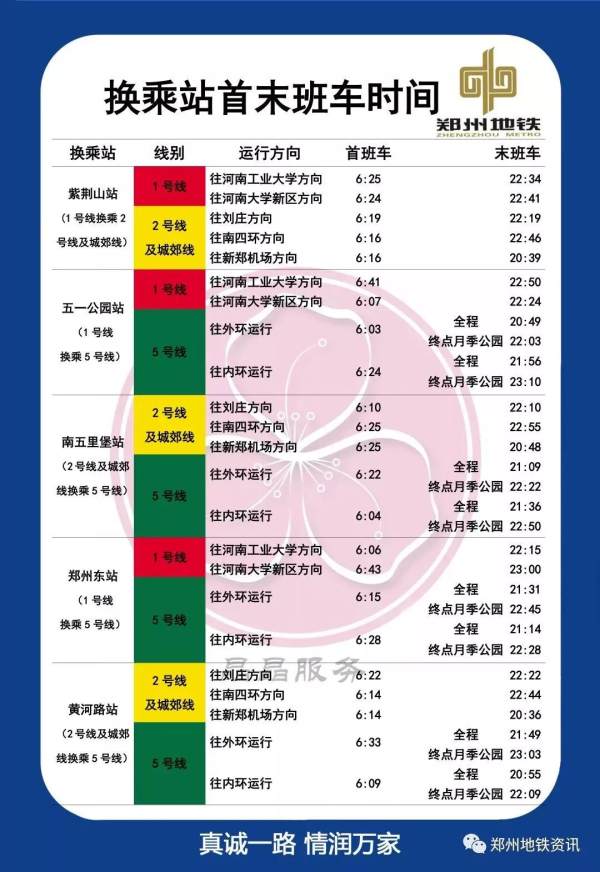 ⊙快收藏!郑州地铁5号线与1号线、2号线、城郊线换乘时刻表来了!