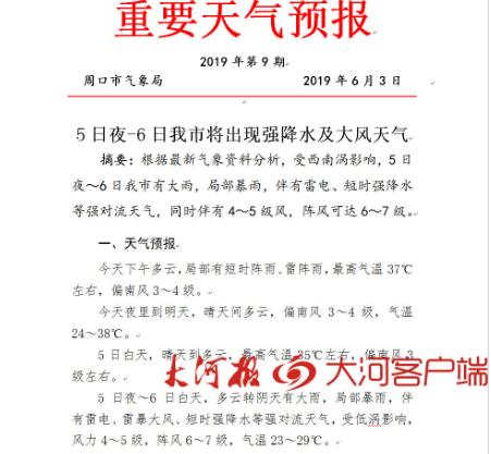 ⊙重要提醒!周口将迎强降水 请农民朋友抓紧麦收