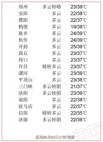 今天,全省晴天间多云,傍晚到夜里,安阳、鹤壁、濮阳三地区多云,局部有阵雨、雷阵雨。黄河以北地区有中到重度干热风。全省偏南风4级左右。最低温度:西部山区16-18℃;其它地区21-23℃;最高温度:东南部32-34℃;其它地区36-38℃,北中部局部40℃。