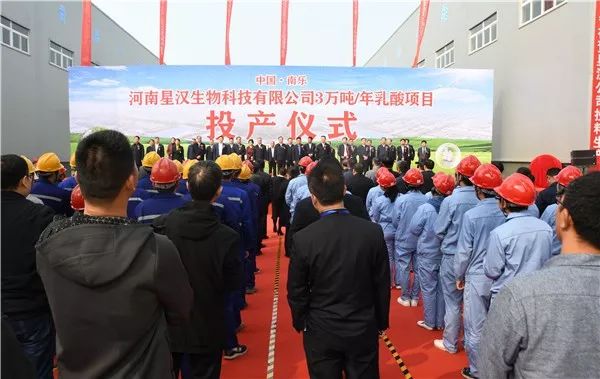 10月18日,河南星汉生物科技有限公司3万吨/年乳酸项目投产仪式举行,濮阳市委书记宋殿宇,市委常委、市委秘书长惠康,市政府副市长高建立、秘书长谢传芳、副秘书长吴增成,县领导刘冰、张耀华、黄泽岭、王淑娟、王建国、刘玉林、宋士宁、刘冰(女)、陈志广及河南安装集团总裁兼星汉公司董事长黄克政、河南安装集团副总裁余建群出席投产仪式。市发改委、自然资源局、工信局、科技局、商务局、生态环境局、投资集团、农商银行、中原银行等,县委办、政府办、宣传部、发改委、自然资源局、投资集团、杨村乡等有关部门主要负责同志,河南永乐生物工程有限公司、河南龙都天仁生物材料有限公司、河南曦江生物科技有限公司等企业代表参加仪式。县委常委、常务副县长王淑娟主持投产仪式。
