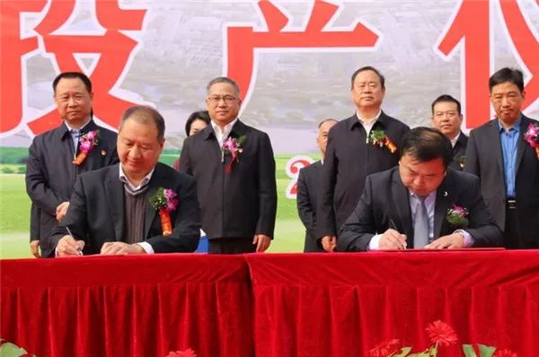 宋殿宇、黄克政、惠康、高建立、刘冰共同触摸启动球启动投料生产;与会领导共同鉴签了河南安装集团与南乐县投资集团签订框架合作协议。