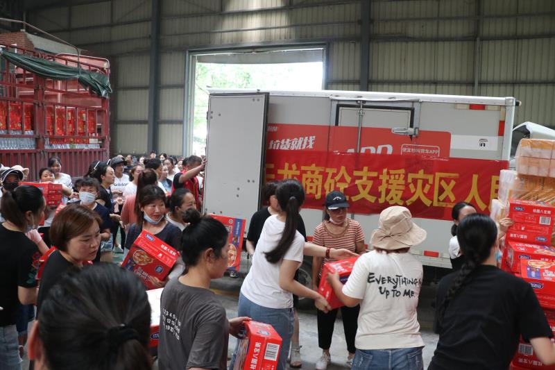 鹿邑县天龙商砼有限公司得知情况后,立即与同城的河南祺洋纸业联系,两家公司负责人一拍即合,当时决定立即采购矿泉水1000件、抽纸卫生纸750提、八宝粥、手撕面包300箱、鹿邑本地特产观堂麻花200箱,火速送达扶沟县。