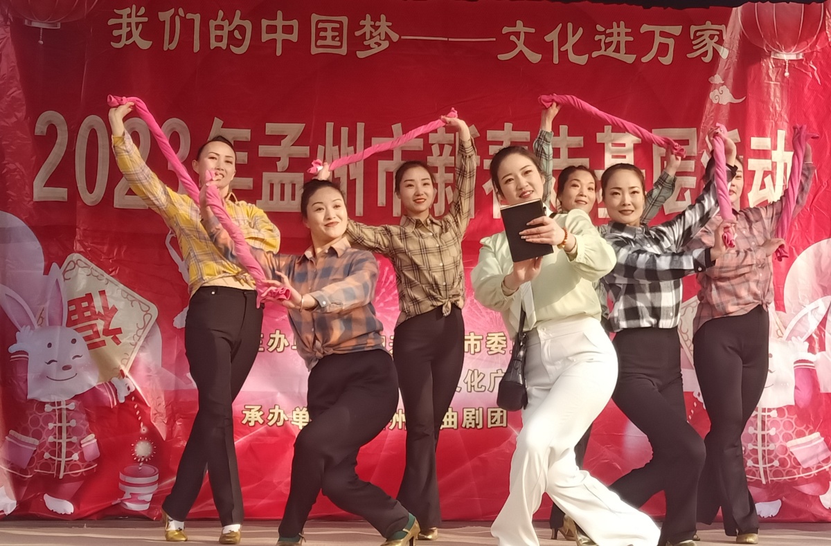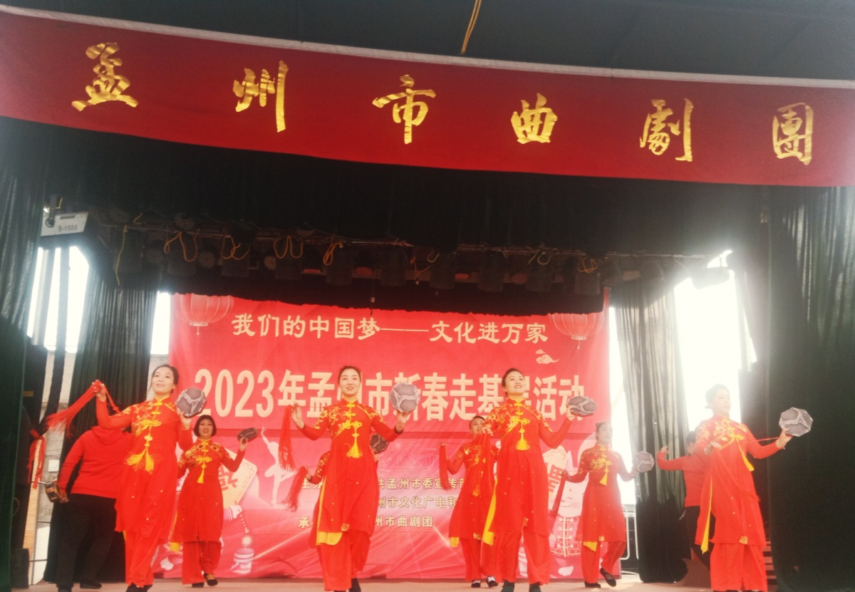 今年大年初一,在孟州市谷旦镇薛村文化广场,一场主题为“文润孟州·‘我们的中国梦——文化进万家’”的2023年孟州市新春走基层文艺演出活动正在热烈进行,为广大群众送上新春的祝福和精美的文化大餐。