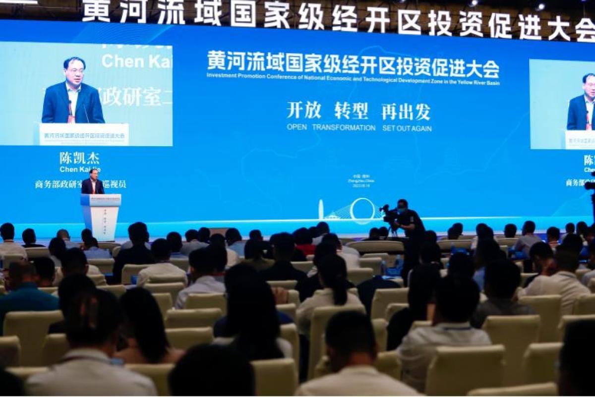 5月17日上午,黄河流域国家级经开区投资促进大会正式开幕。商务部,河南、山东、山西、陕西、内蒙古、甘肃、青海、四川等沿黄九省区的近30家国家级经开区代表,以及数百家实力名企一同参会,深入开展交流探讨,分享各自开放发展、创新提升的经验和做法,推动黄河流域东中西部地区经开区互帮互鉴、协同发展,共同谋划黄河流域经开区的长远发展愿景。