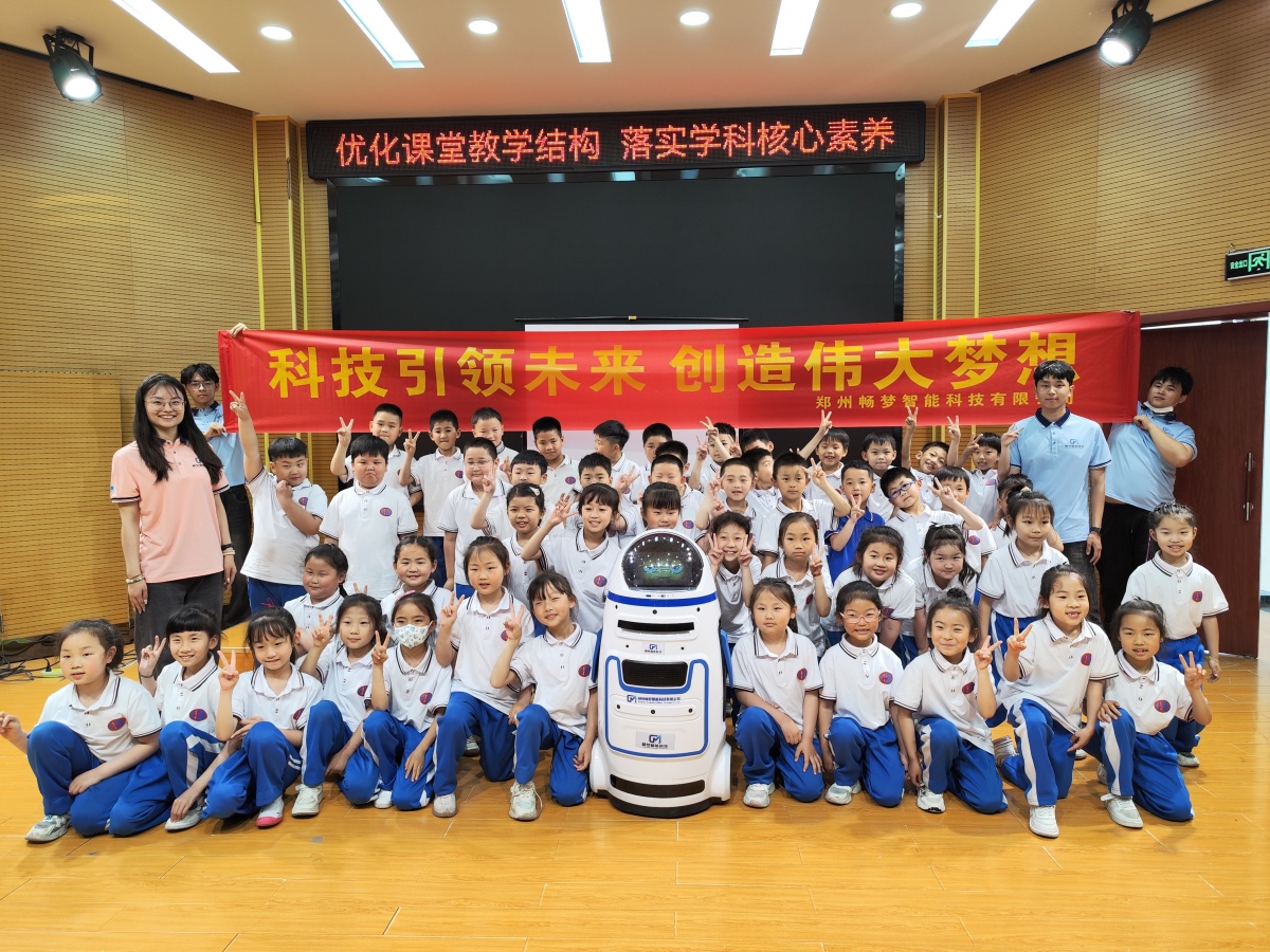 5月18日,郑州畅梦智能科技有限公司联合郑州铁路职业技术学院机器人科技创新协会、无线电协会 ,赴开封大厅门小学开展科技教育进校园“机器人创新作品展示与表演”活动,郑州畅梦智能科技有限公司的法人代表吴昱璇及郑州铁路职业技术学院科技社团的学生为全校1800余名学生带来了一场机器人科技创新作品展示与表演的体验。