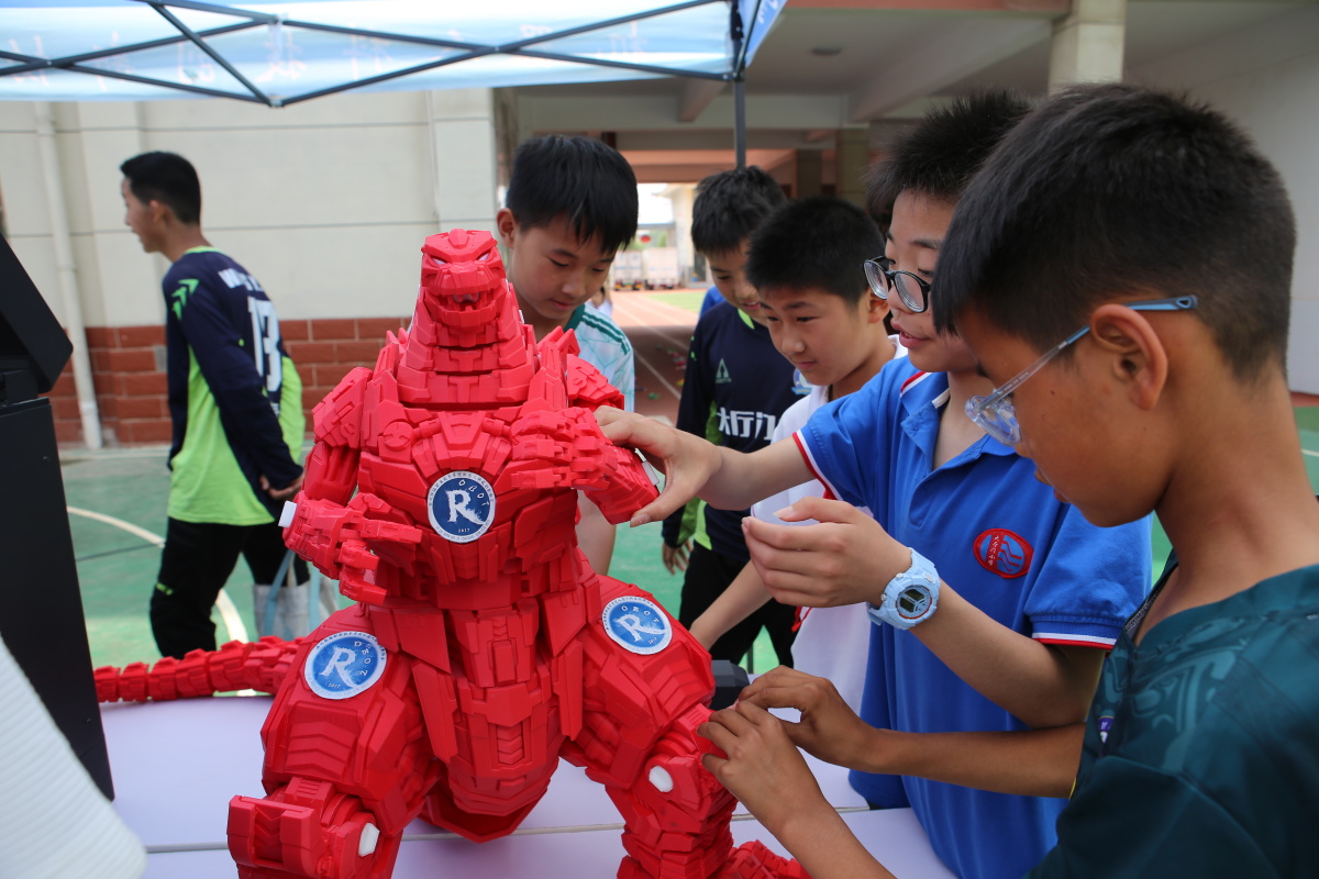 活动过程中展示的酷炫精彩的格斗机器人表演,作为操作手的法人代表吴昱璇带领小朋友们亲自体验。上课铃响,小朋友们还对机器人依依不舍,仍旧意犹未尽,不愿离去。
