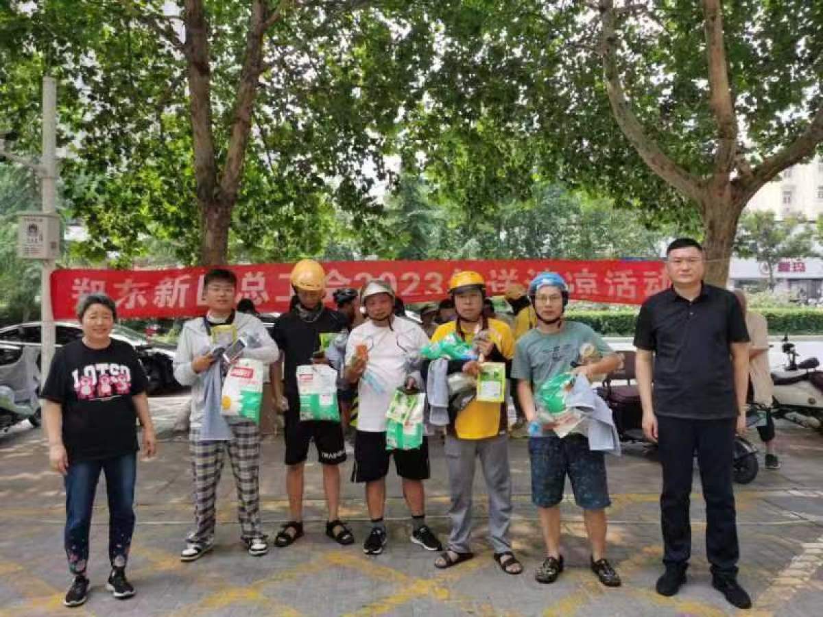秋天已至,酷暑未退。作为新就业形态劳动者代表的外卖骑手们始终坚守岗位,穿梭于大街小巷,为市民提供运送便利。8月21日,在区党工委的有力领导下,郑东新区总工会联合商都路办事处人大办在郑东商业中心开展2023年“送清凉”活动,商都路工会主席潘秋分、人大办公室主任王海涛参加。