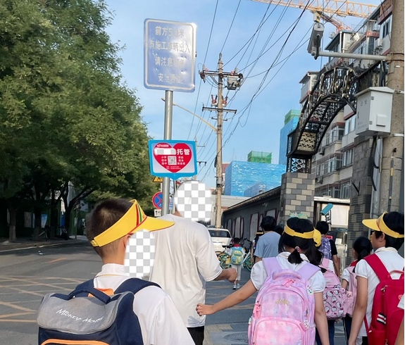“来,这边集合。”小杨接到学生,第一时间拍照打卡。等到人齐以后,他带着五个学生走回托管班。