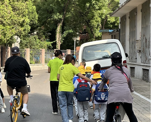“来,靠右走。”下午3点40分,在位于和平里的一所小学门口,几位工作人员引导小学生们排着队向托管机构走去。
