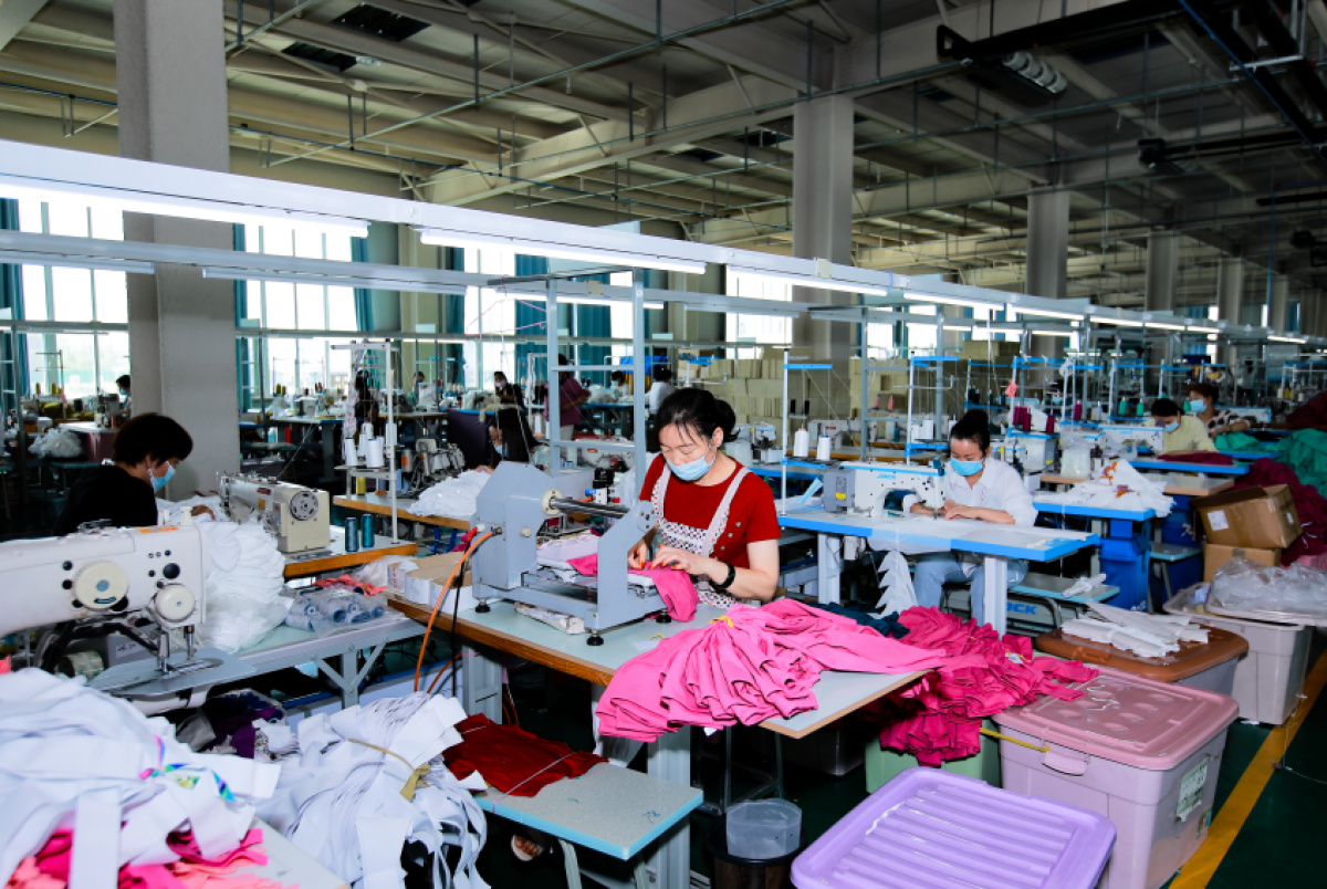 11月6日,走进漯河凡圣由心实业有限公司,记者看到多条生产线马力全开,工人们坐在缝纫机前赶制衣服,为即将到来的“双十一”做好充足准备。