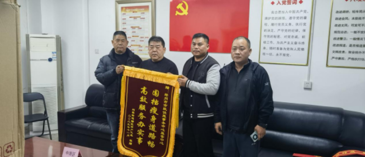 11月27日下午,惠济区刘寨街道辖区商户代表向郑州市城管局市政设施事务中心监管中心赠送了一面“围挡瘦身道路畅,高效服务办实事”锦旗。
