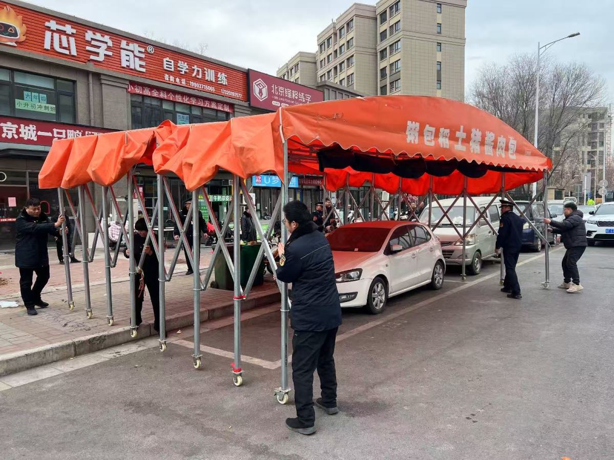 此次整治重点是辖区主次干道、商圈周边、学校沿线,瞄准“两类突出行为”:一是沿街商户擅自超出门窗经营、在店外堆放货物、搭设固定摊点的突店行为;二是未经审批在人行道、游园绿地等公共区域搭建帐篷,用于经营、露营等占用公共资源的违规行为。整治现场,中队执法人员始终秉持“721工作法”,将普法宣传贯穿整治全过程。对初次违规、情节较轻的商户,采取“面对面宣讲+手把手指导”模式,详细解读相关条例规定,阐明违规行为的法律后果与安全危害,引导经营者自觉整改;对违规搭建帐篷的商户,执法人员不但耐心说明公共区域的属性与使用规范,同时还协助其清理物品、拆除帐篷,全程温情服务、高效配合。