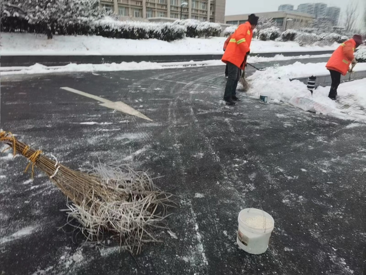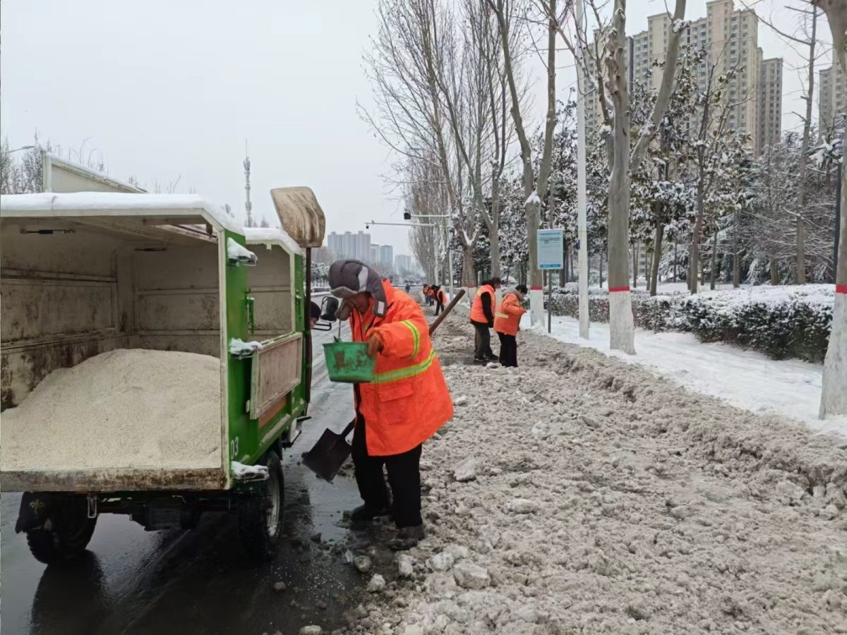 清晨的寒风里,橙色的身影再次集结。大家背着融雪剂、拿着扫帚铁锹,在福利院路,重点清理了社区出入口、养老机构门前的步道,用铁锹铲除压实的残冰,用扫帚扫净细碎积雪,为老人和居民铺就了安全的出行通道;沙口路沿线的商铺前,原本湿滑难行的路面已被清扫干净,商户们纷纷点赞;银河路的背街小巷里,环卫工人们正合力清运堆积的雪堆,确保自行车、电动车通行顺畅,让市民“最后一米”的出行不再受阻。