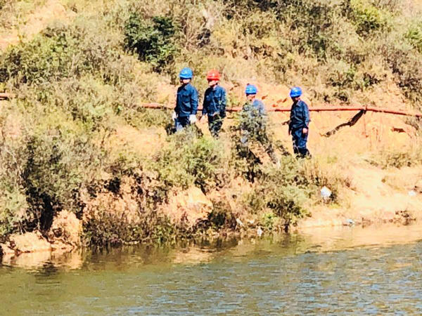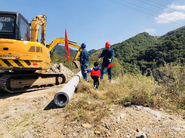 高志刚当天在尖山太子湖边施工,这里需要十几根电线杆,已经快一个月了,还没有结束。刚才儿子看见他的地方,正是他和同事一起商量如何让电线杆顺利渡河,如何将电线杆从山顶运到河边。