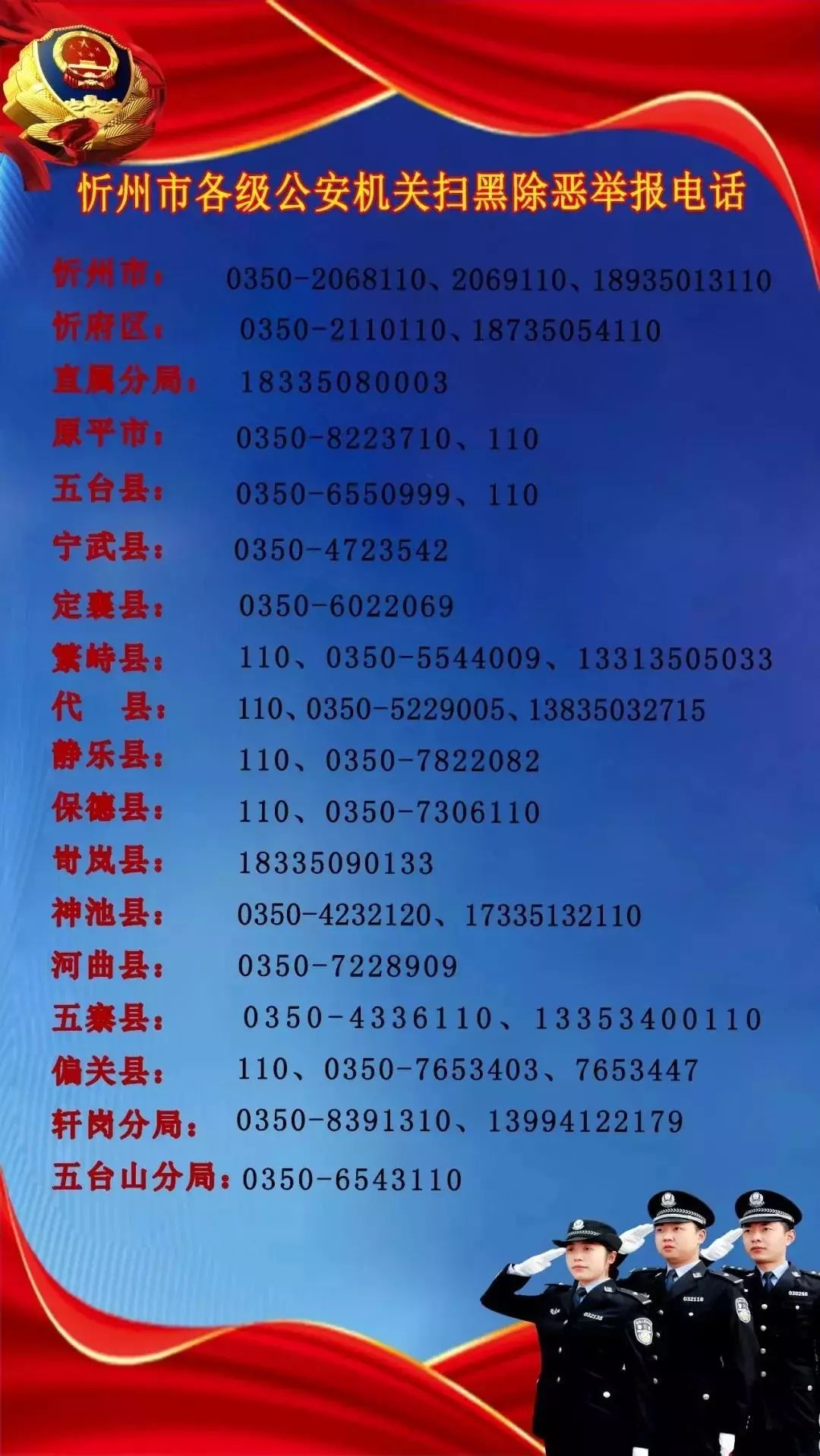 晋中市公安局:0354-110
