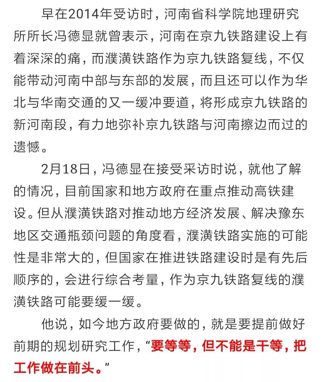 当时有媒体引述专家的观点称,如濮潢铁路能得到批准修建,不仅能解决豫东地区的交通问题,还将形成京九铁路的新河南段,有力弥补京九铁路与河南擦边而过的遗憾。