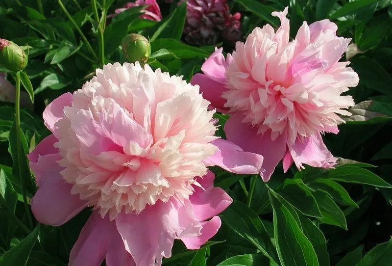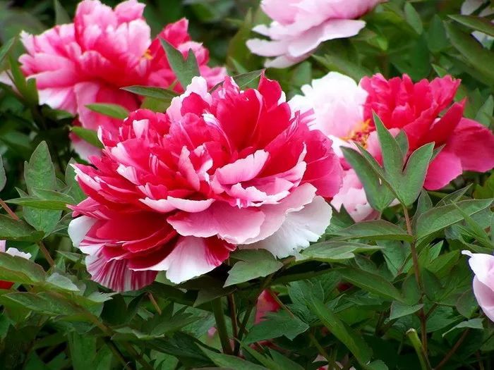 朵大瓣多的牡丹花,一簇簇一片片,在微风中摇曳着美丽的身姿。层层叠叠的粉色花瓣,犹如水中泛起了涟漪,在绿叶的衬托下更显自然和谐,绿叶托红花,红花秀绿叶,更有一股带着泥土清幽的芳香让人心旷神怡。