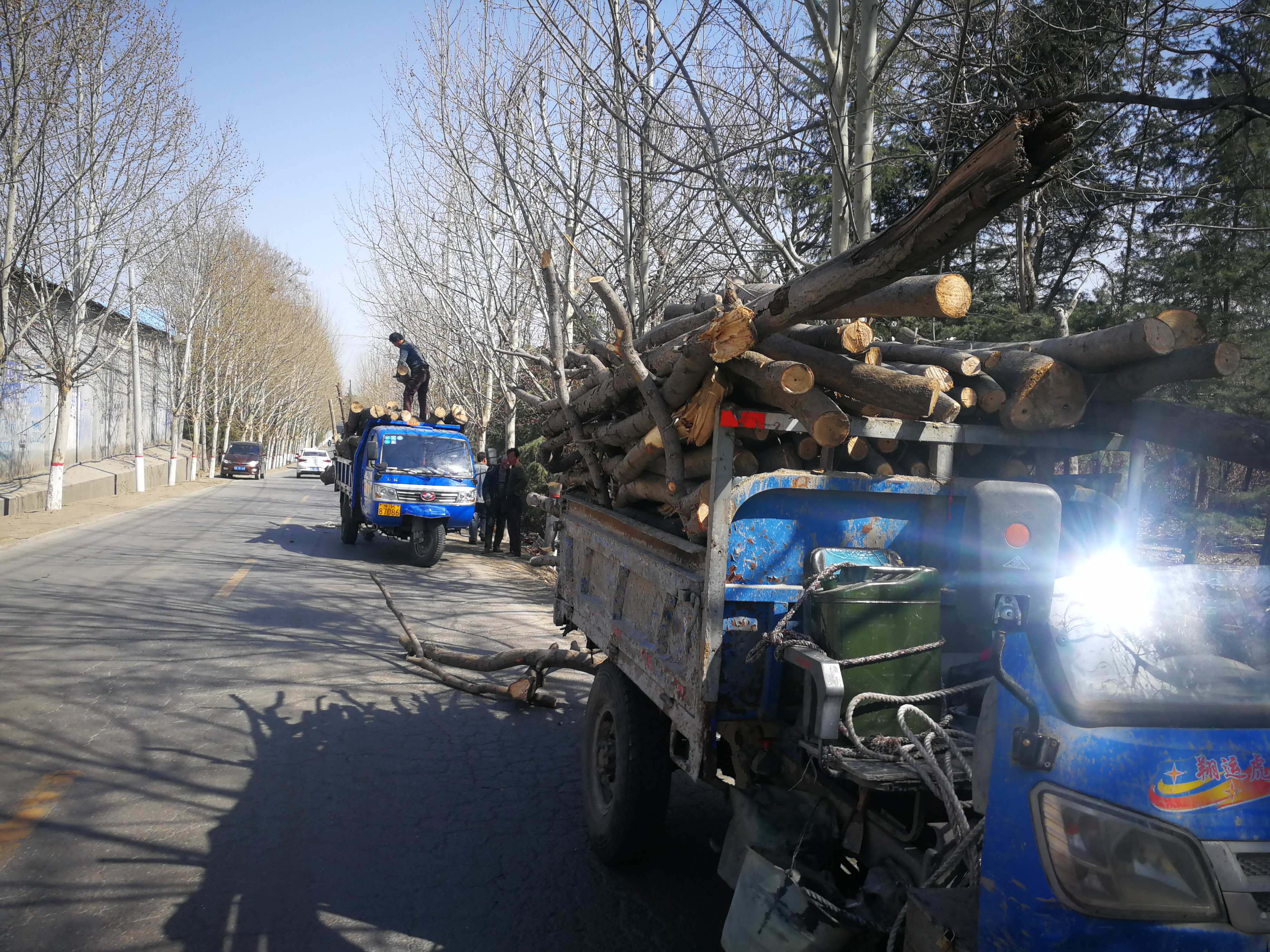 3月25日,市民袁先生回老家办事时发现,生长山沟间几十年的大树,被人大量刨根挖掉,柏树、雪松长相好些的,则被连根整体拔出地面,装上货车运走。泡桐、杨树等长势不好的大树,则被从根部锯掉,切割成段码放整齐,转运货车。