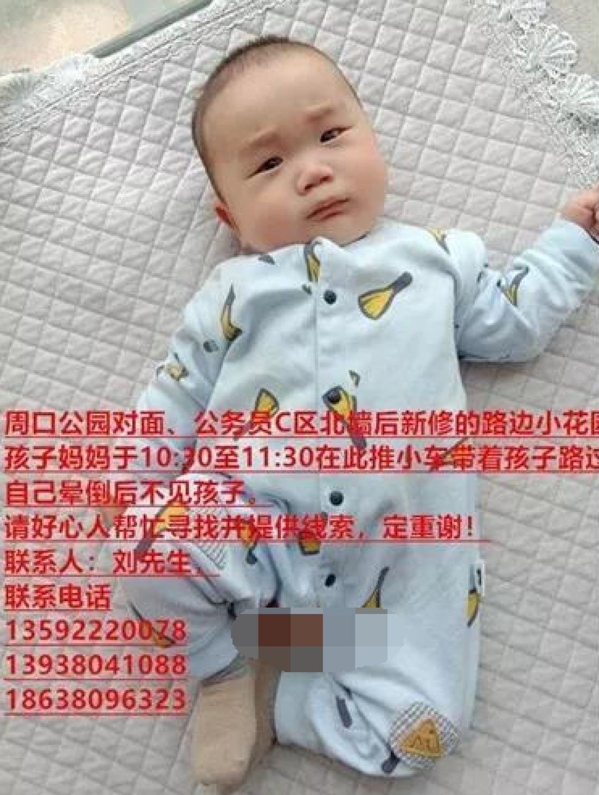 紧急寻人!周口一妈妈路边花园晕倒,四月大孩子不见了(附监控视频)