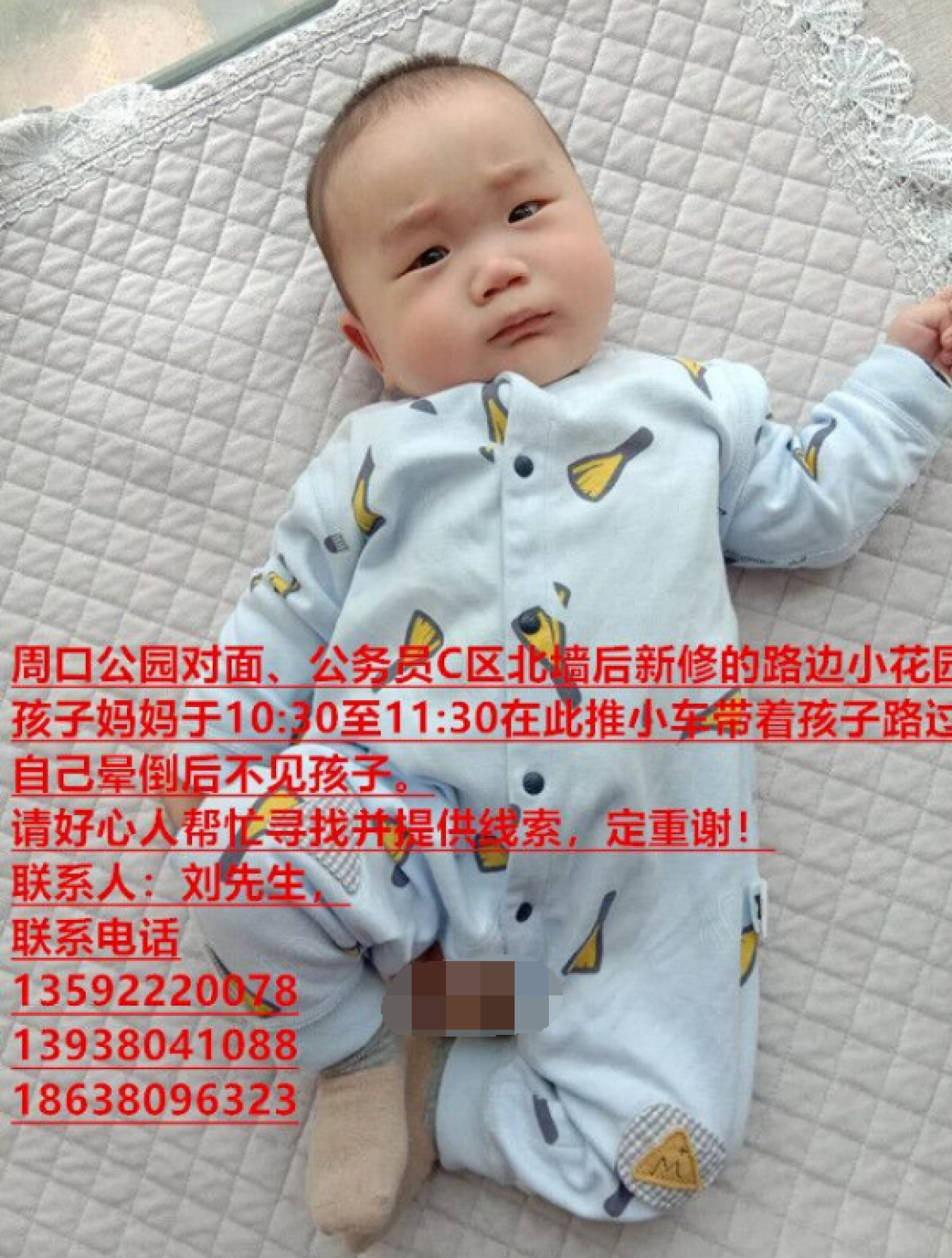 紧急寻人!周口一妈妈路边花园晕倒,四月大孩子不见了(附监控视频)