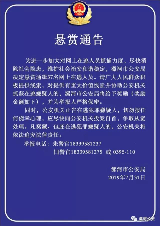 更多悬赏信息戳:漯河市公安局发布悬赏通告