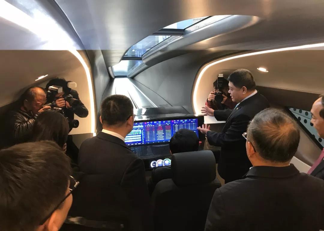 ▲嘉宾现场体验高速磁浮列车