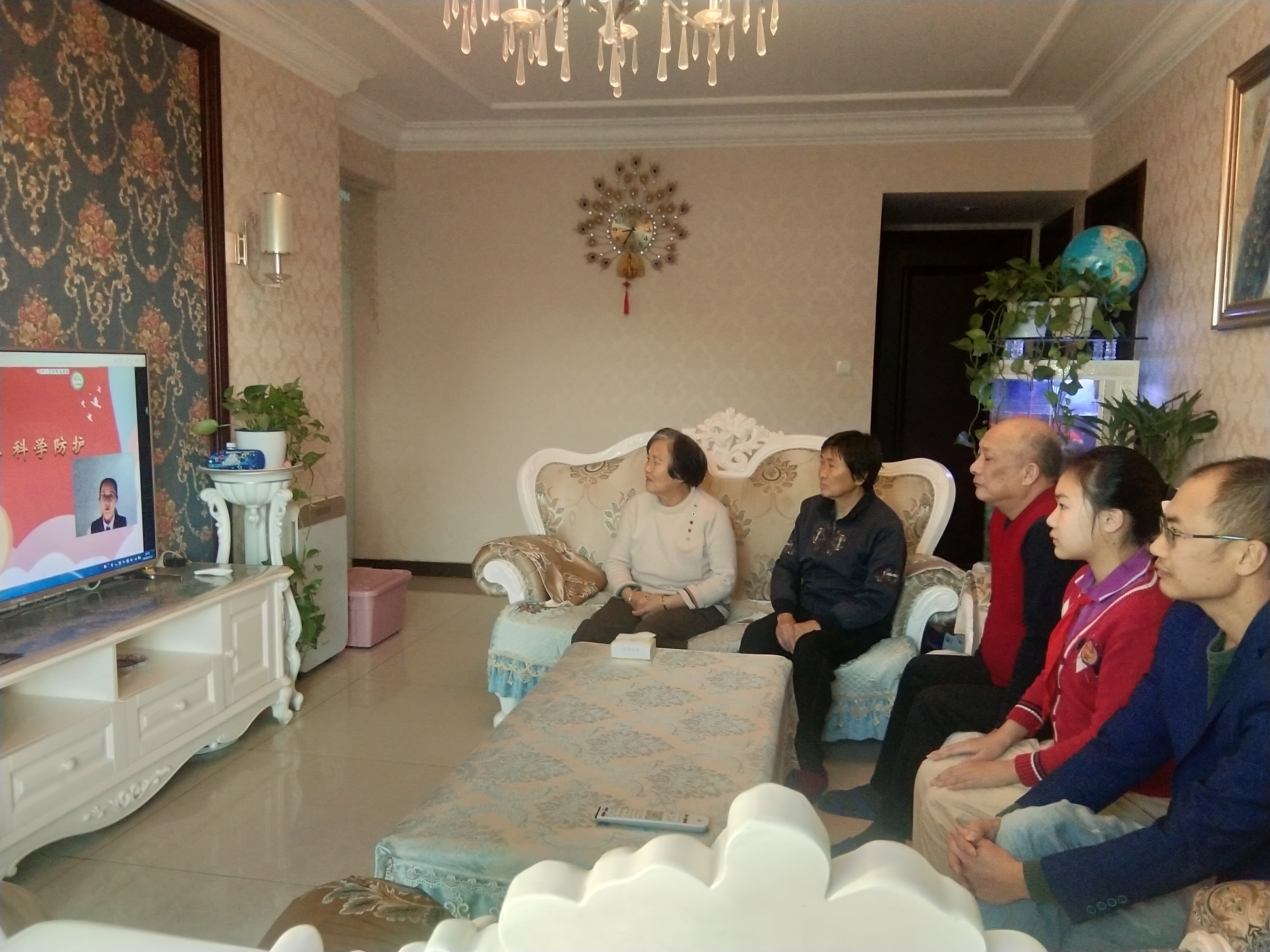 六一班杨华依全家一起观看开学典礼