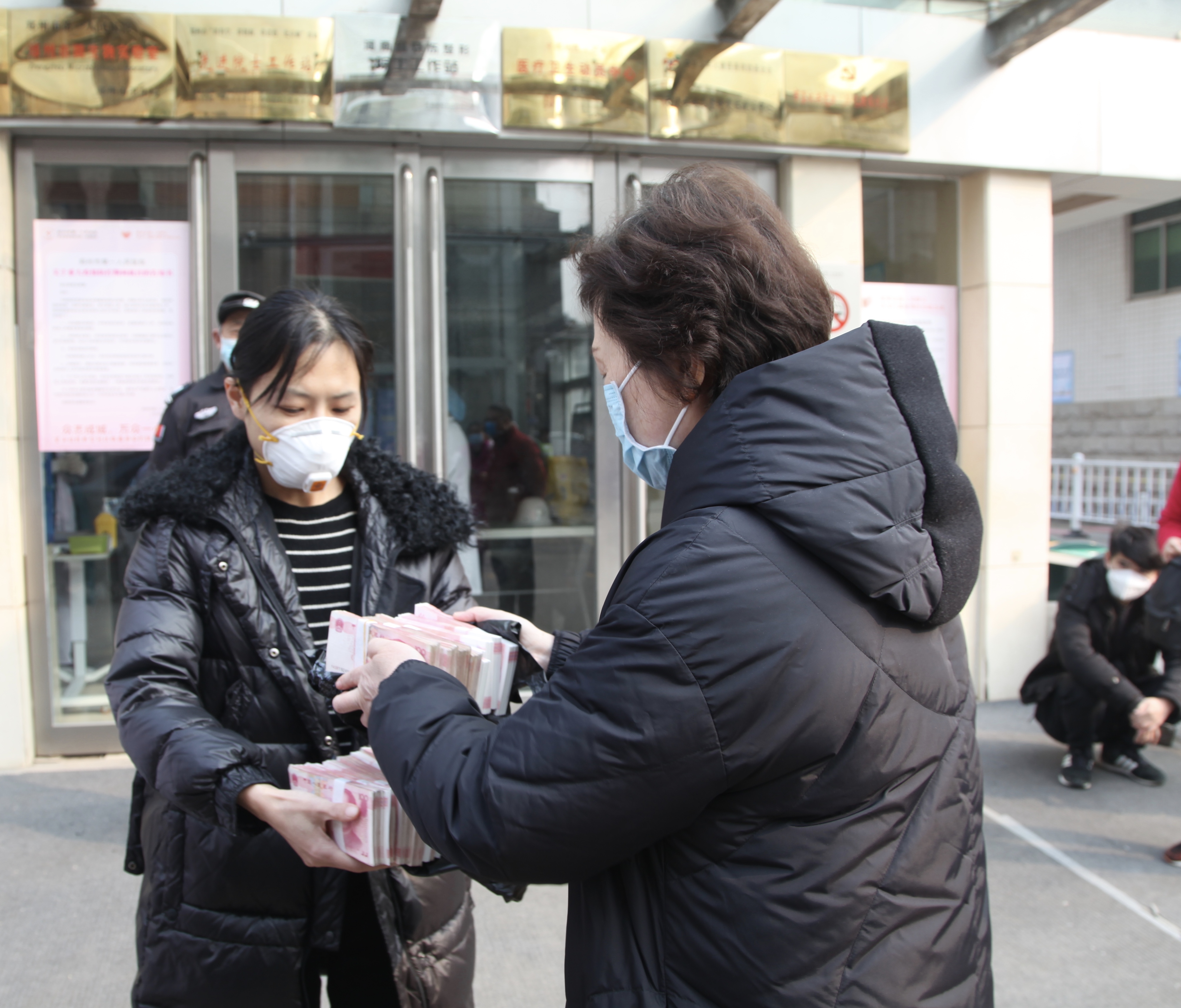 2月25日,得知患者医疗费紧缺,郑州慈善总会把首笔善款30万元送往医院,善款直接由医护人员清点后缴存医院。王绍军的爱人于女士接过沉甸甸的善款,激动得热泪盈眶。
