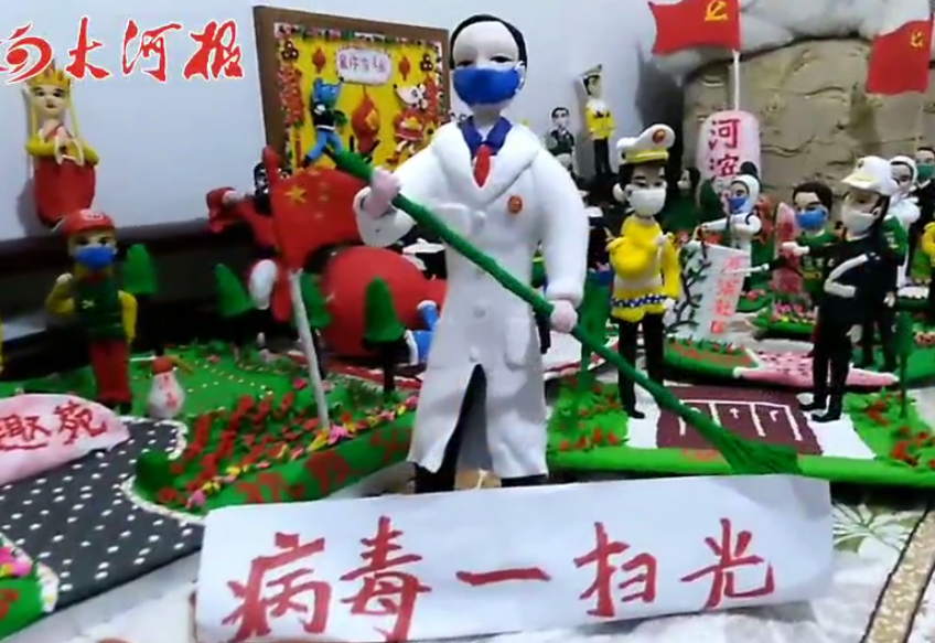 由医护人员、警察、抗疫志愿者、或由动植物、中国版图等组成,这些在朋友圈走红的一组组惟妙惟肖的面塑,是由平顶山市园林绿化中心职工贾军政和其从事教 育事业的女儿贾萍娜创作,内容反映了疫情期间抗疫一线各行各业人员的工作画面。3月10日,在平顶山市非物质文化遗产保护项目——贾氏面塑第三代、第四代传承人贾军政和女 儿贾萍娜家中,记者见到了他们父女创作的圈粉大片的一线抗疫人员面塑。