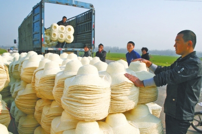 鹿邑是小麦生产大县,大量的小麦秸秆除部分还田外,还剩余很多。这种独特的资源优势带来了无限商机。小麦秸秆,正是编草帽的最佳原材料。在县里支持、引导下,一批草编企业应运而生,农村剩余劳动力尤其是大龄妇女在家门口轻松实现就业。
