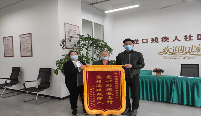 11月17日上午,48岁的马鸿涛在两位残疾人朋友的陪伴下,带着两面锦旗来到高新区社会事业局,感谢该区针对困难群体的“居家托养”服务项目给大家带来的帮助。