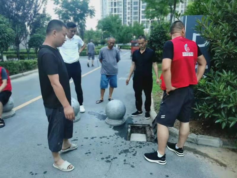 近段时间雨水增多,堂李村党委书记带领村“两委”及工作人员在暴雨天气深入社区一线对小区的地下水通道逐一排查,并严格要求防汛物资储备到位。小区内因多处下水管道不通,造成小区大面积的积水现象,村党委书记强调指出,“防汛工作关乎群众的生命及出行的安全,我们就算加班加点也要尽快解决,必须保证小区在汛期地下通道的畅通。”经过破除路面排查,发现雨水管道已经被压扁导致水流不畅,为了防汛应急,堂李村决定立即破路修复,并对小区每个下水管道逐一疏通。设备无法使用时,工作人员更是亲自跳进下水管道用手排淤。