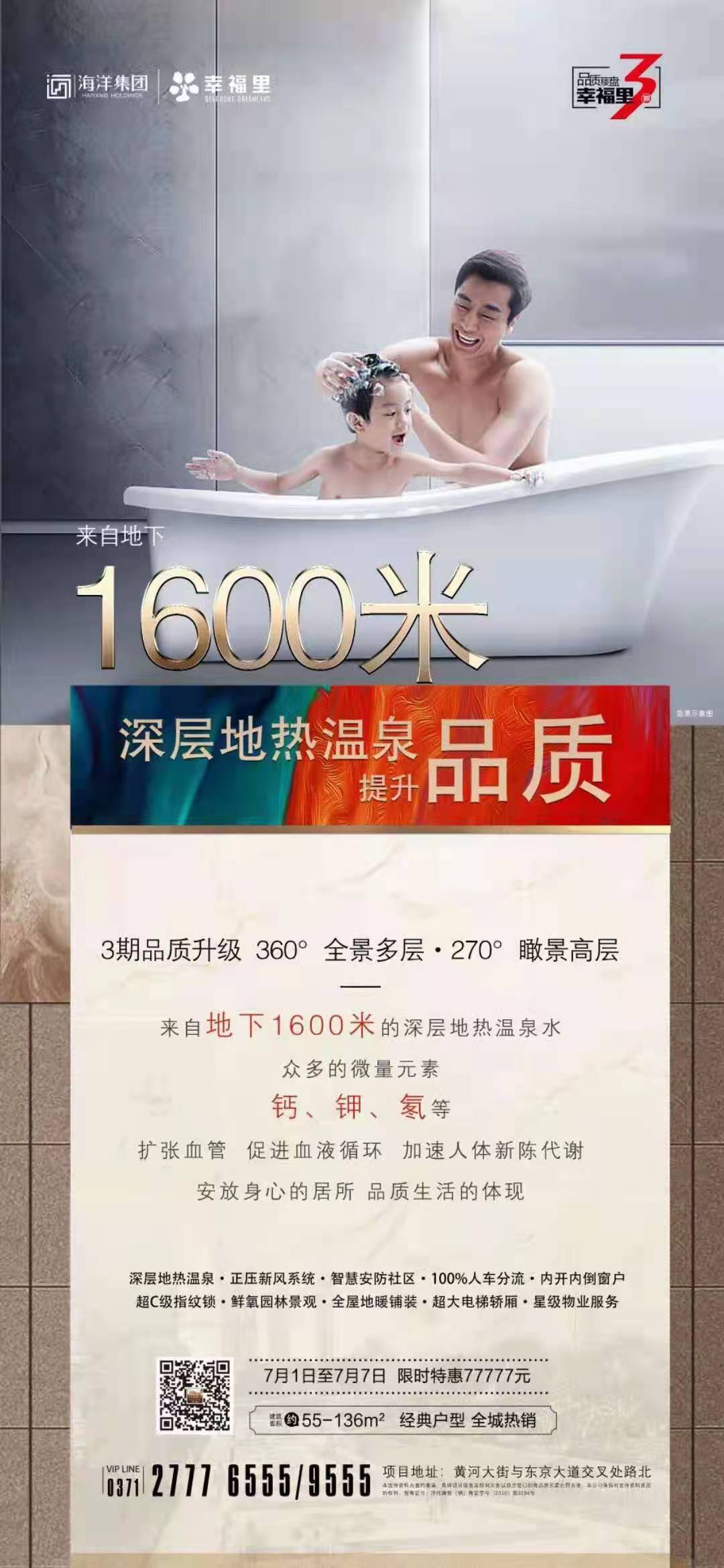 “地热温泉、地暖铺设是我们小区最大的卖点,因为温泉地热水几乎是所有新建楼盘难以逾越的配套缺失。而 ‘幸福里’ 1600米的温泉地热水是标配,这是周边楼盘都无法比拟的。”售楼员热情地向记者介绍。