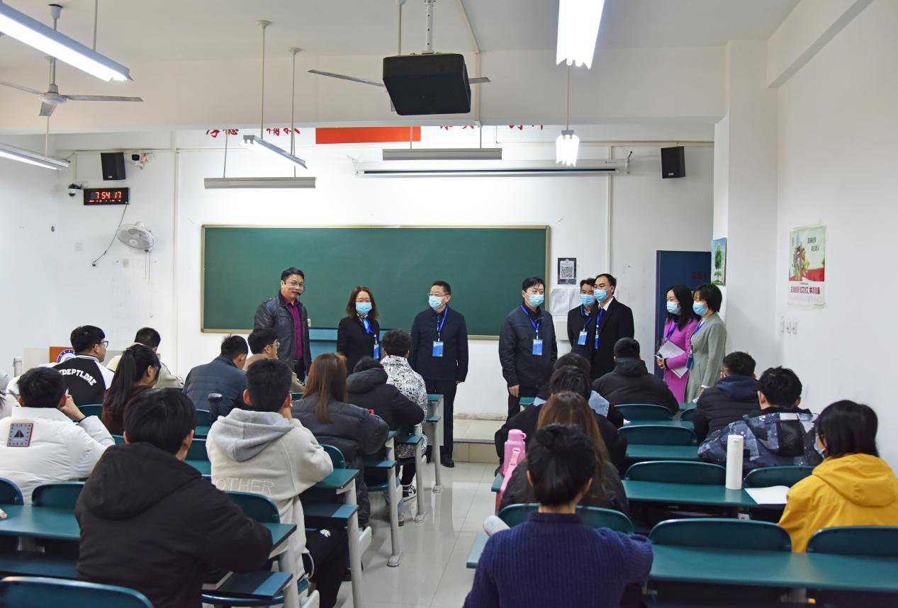 随后,陈丙义一行进行了随堂听课,听取了理学部教师张宁讲授的《概率论与数理统计》。课前,该校领导与同学们亲切交流,了解他们对课堂教学的意见或建议。听课结束后,对任课教师的授课情况进行了集中评议,对教师的课前准备、教学内容、教学组织等方面给予了具体指导意见。