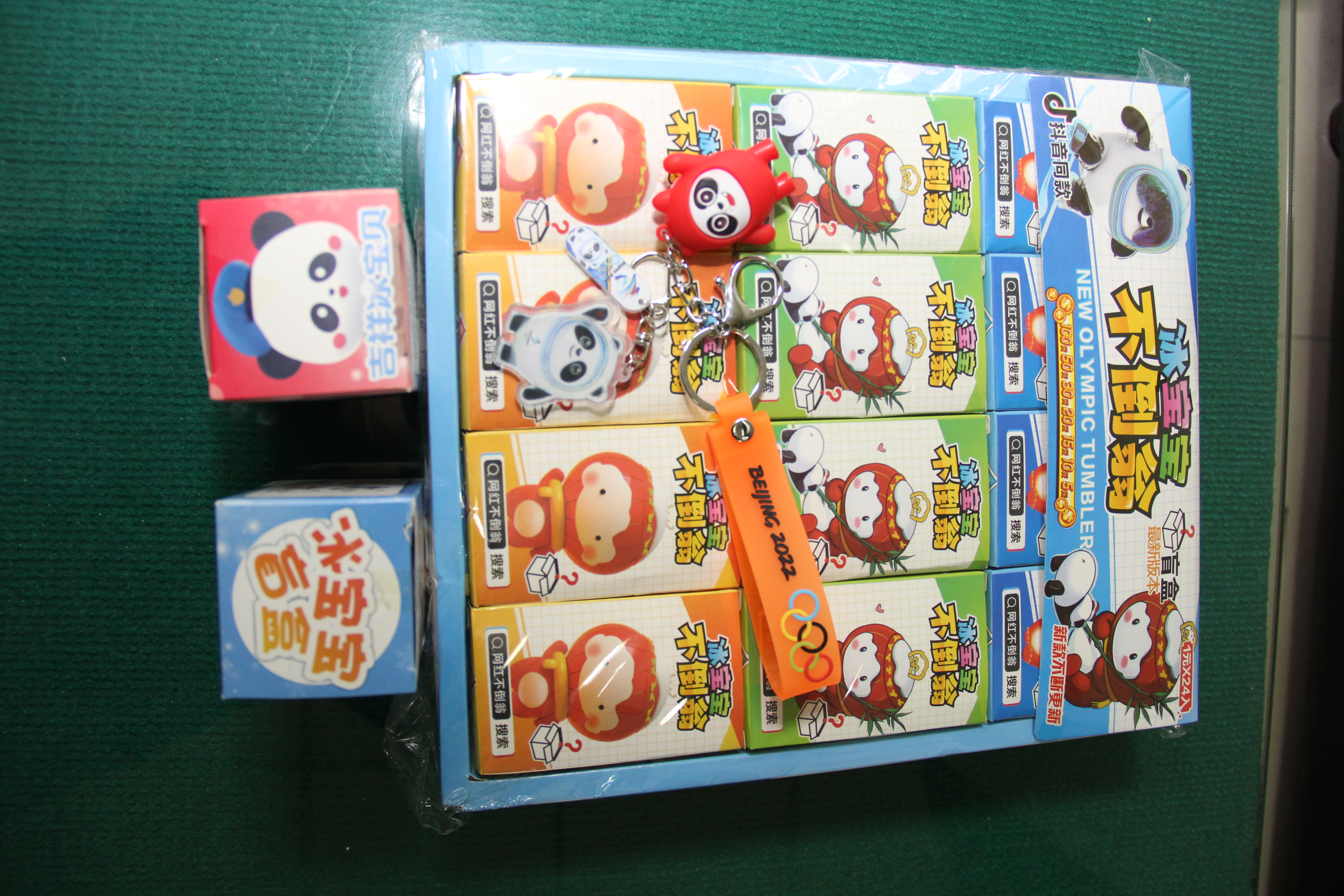 3月15日上午,郑州市二七区市场监管局建中街市场监管所的执法人员在开展“3·15”宣传活动中,发现陇海路3519市场内有商家在销售北京冬奥会吉祥物“冰墩墩”的小玩具。执法人员在一家玩具店内,看到有种冰宝宝不倒翁的盲盒上标有“雪融融”图案,大盒内装有12个小盒,小盒内装的都是“雪融融”式样的不倒翁。除此之外,该店还销售印有“冰墩墩”图案的钥匙扣。