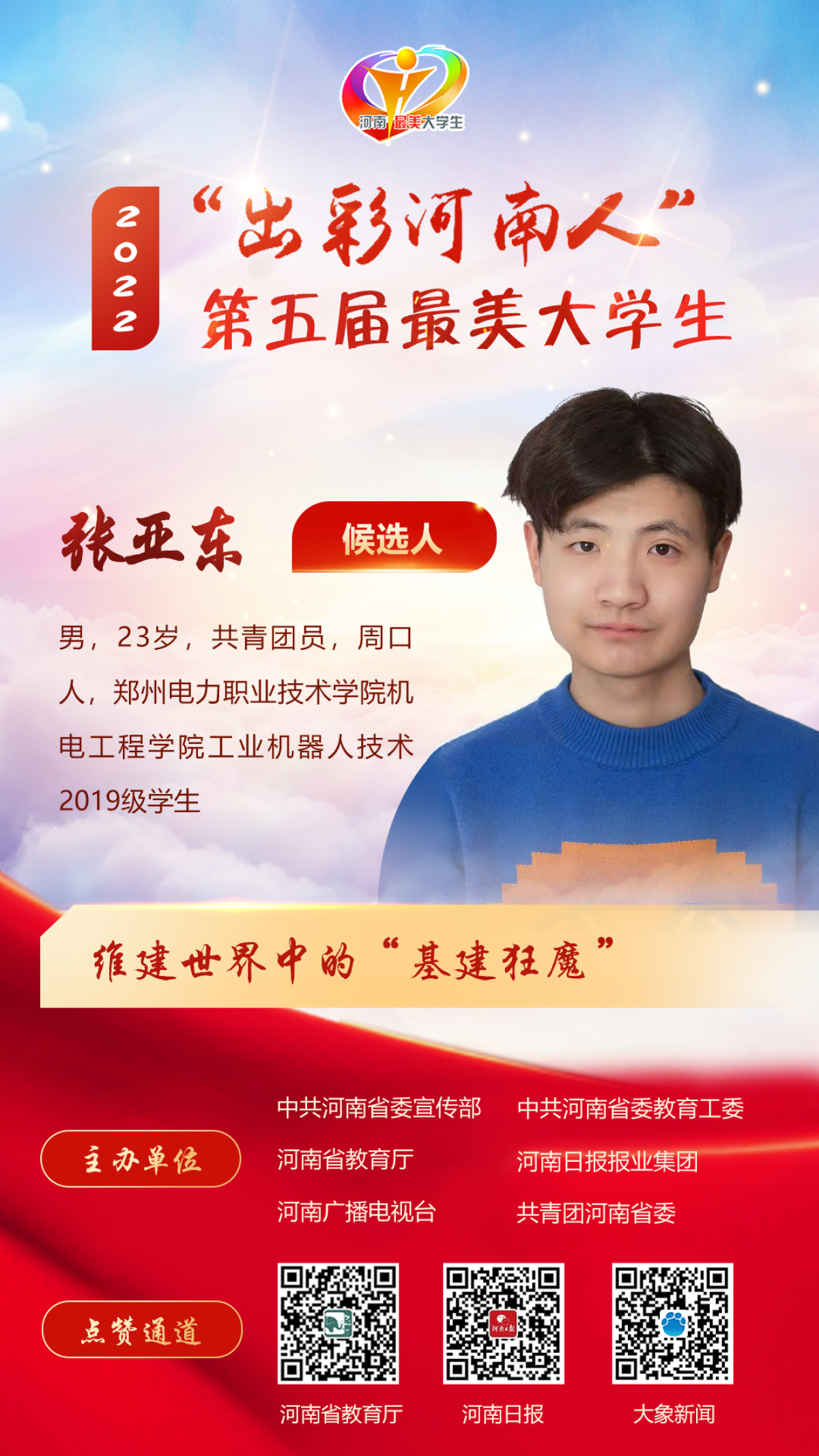 11.张亚东,男,23岁,共青团员,周口人,郑州电力职业技术学院机电工程学院工业机器人技术2019级学生。