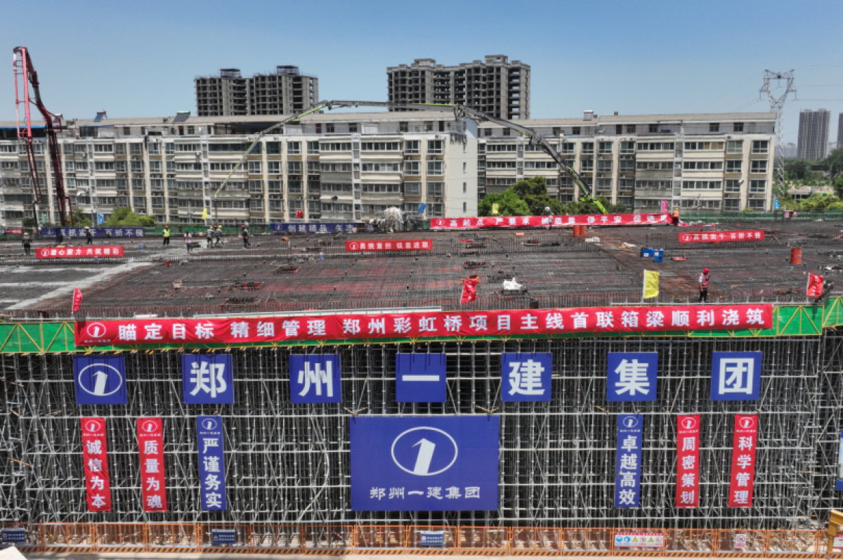 新桥桥面最宽处现身!郑州彩虹桥工程主线首联现浇箱梁浇筑完成