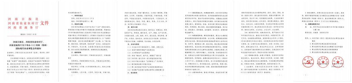河南省日报社、河南省农业农村厅、河南省商务厅关于举办2022河南(郑州)国际现代农业博览会的通知