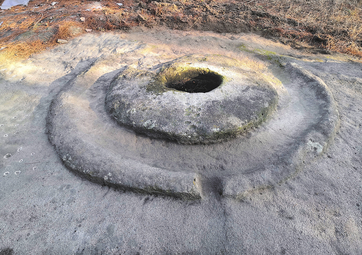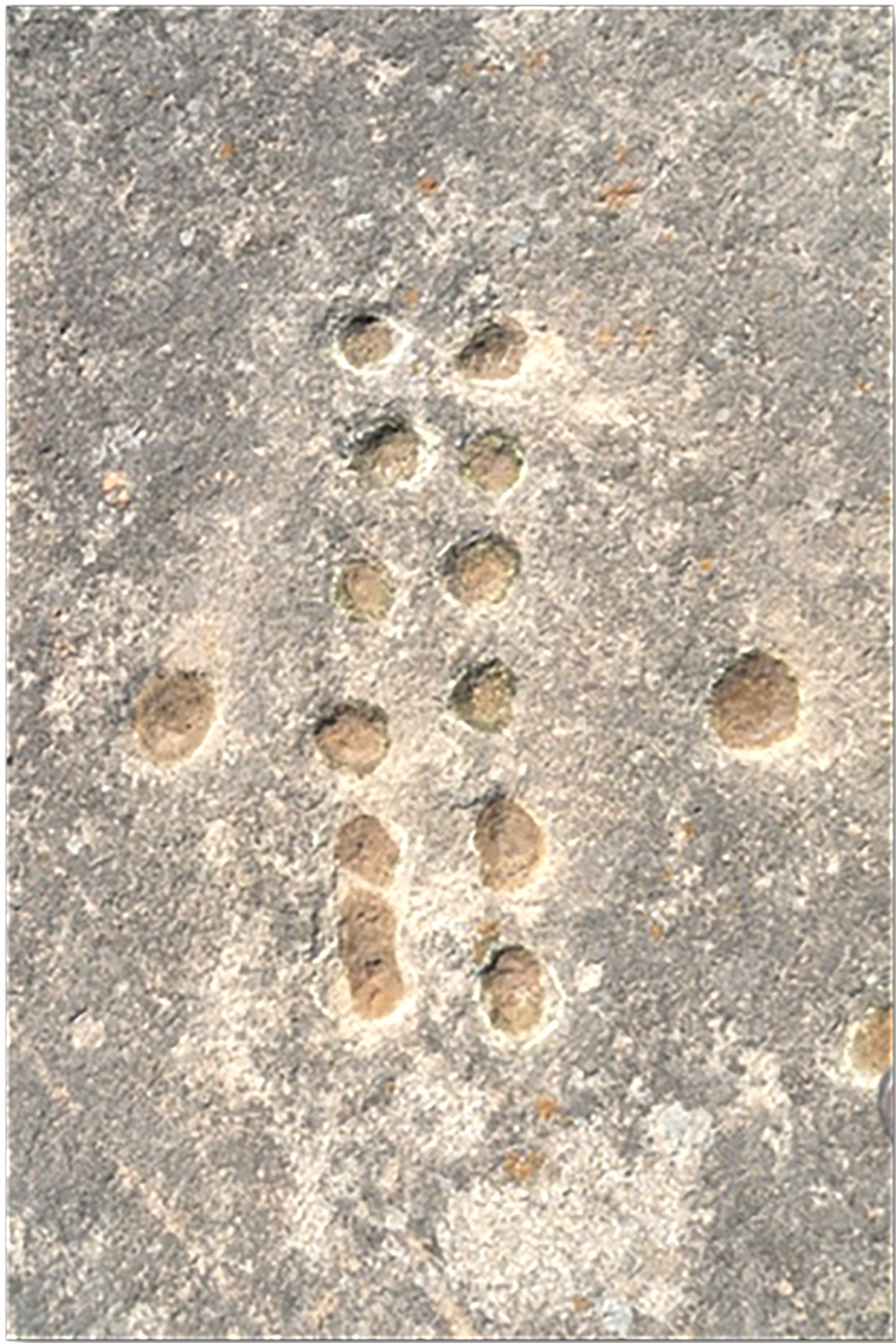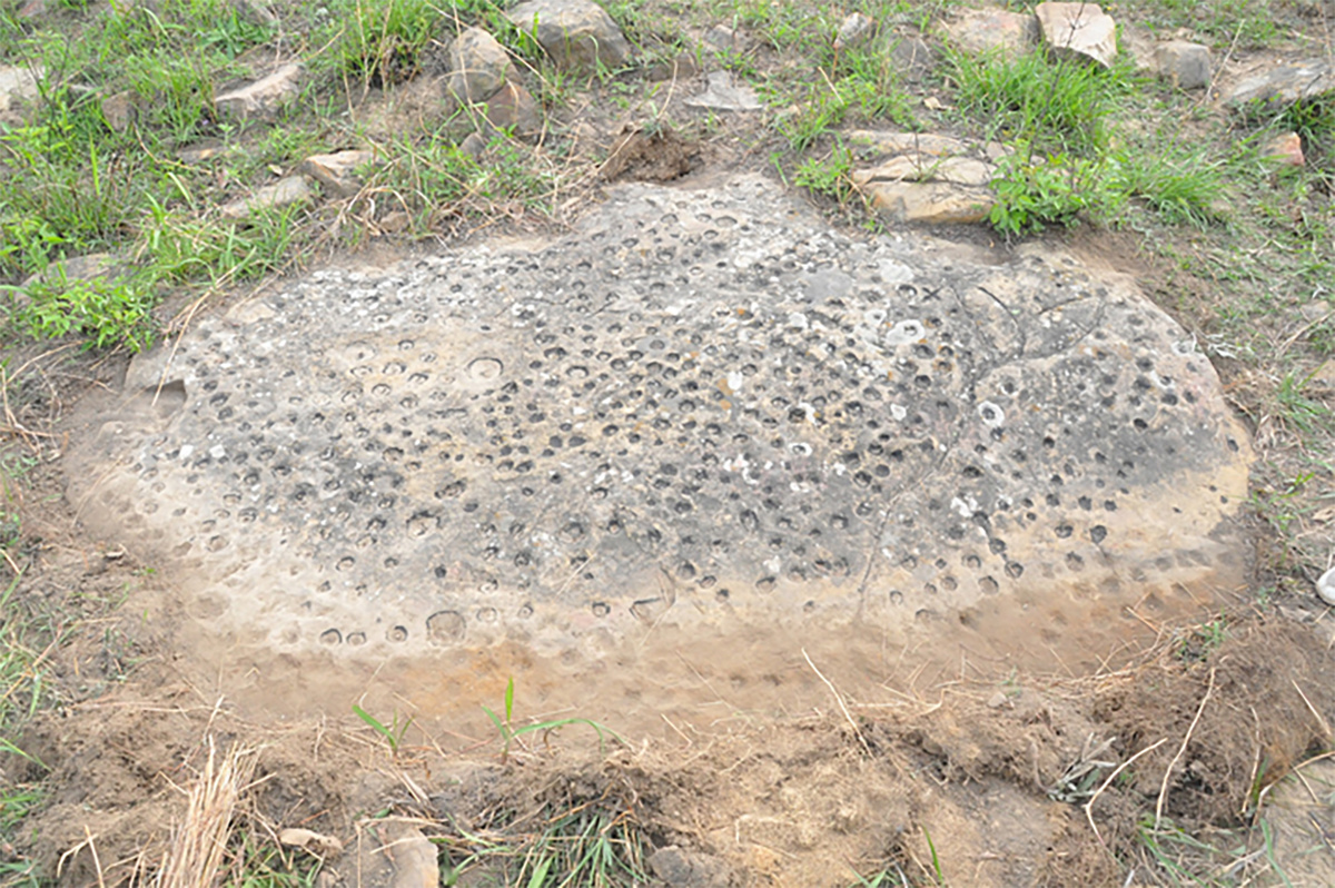 南阳凹穴岩画(爻窝)主要为圆形组合和线性图案。双排凹穴组合是南阳最具特色的组合形式,最多可达双排24连穴。岩画大都刻在花岗岩和石英砂岩上,多分布在海拔较低、视线开阔的浅山丘陵地带,周围多分布有河流。制作方法大多为直接敲凿法,少数为金属工具刻凿而成。