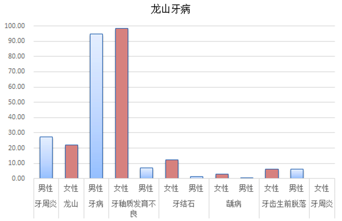 李彦桢分析说,龙山人群女性的龋病、牙齿生前脱落和牙周炎患齿率略高于男性,可能说明女性的口腔健康状况略差于男性,在饮食结构中,女性获取了更高比例的碳水化合物。仰韶、龙山人群的牙结石高患齿率可能意味着当地饮食中富含较粘性的蛋白质或碳水化合物,并且所处生活环境的水质含沙量较大。