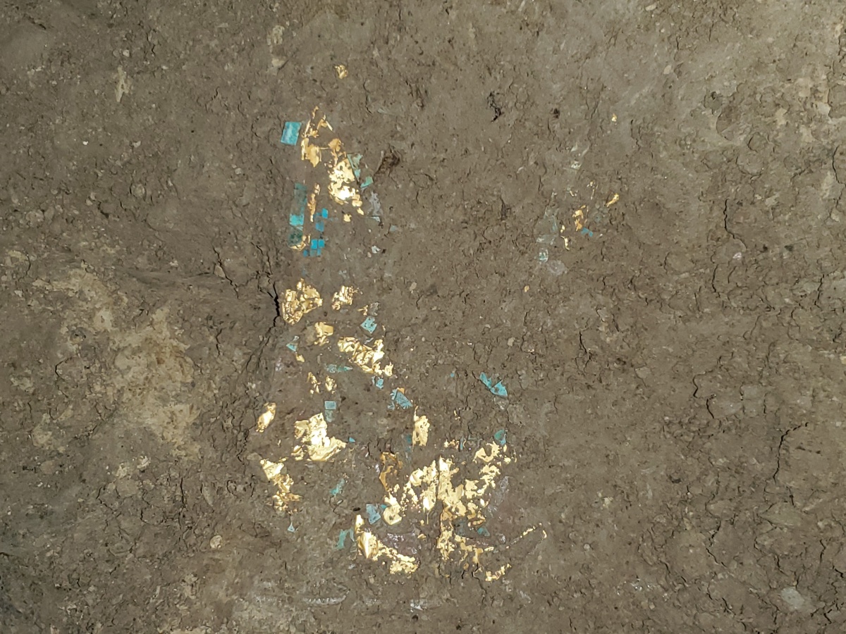 M2出土以金箔为地镶嵌绿松石的兽形牌饰