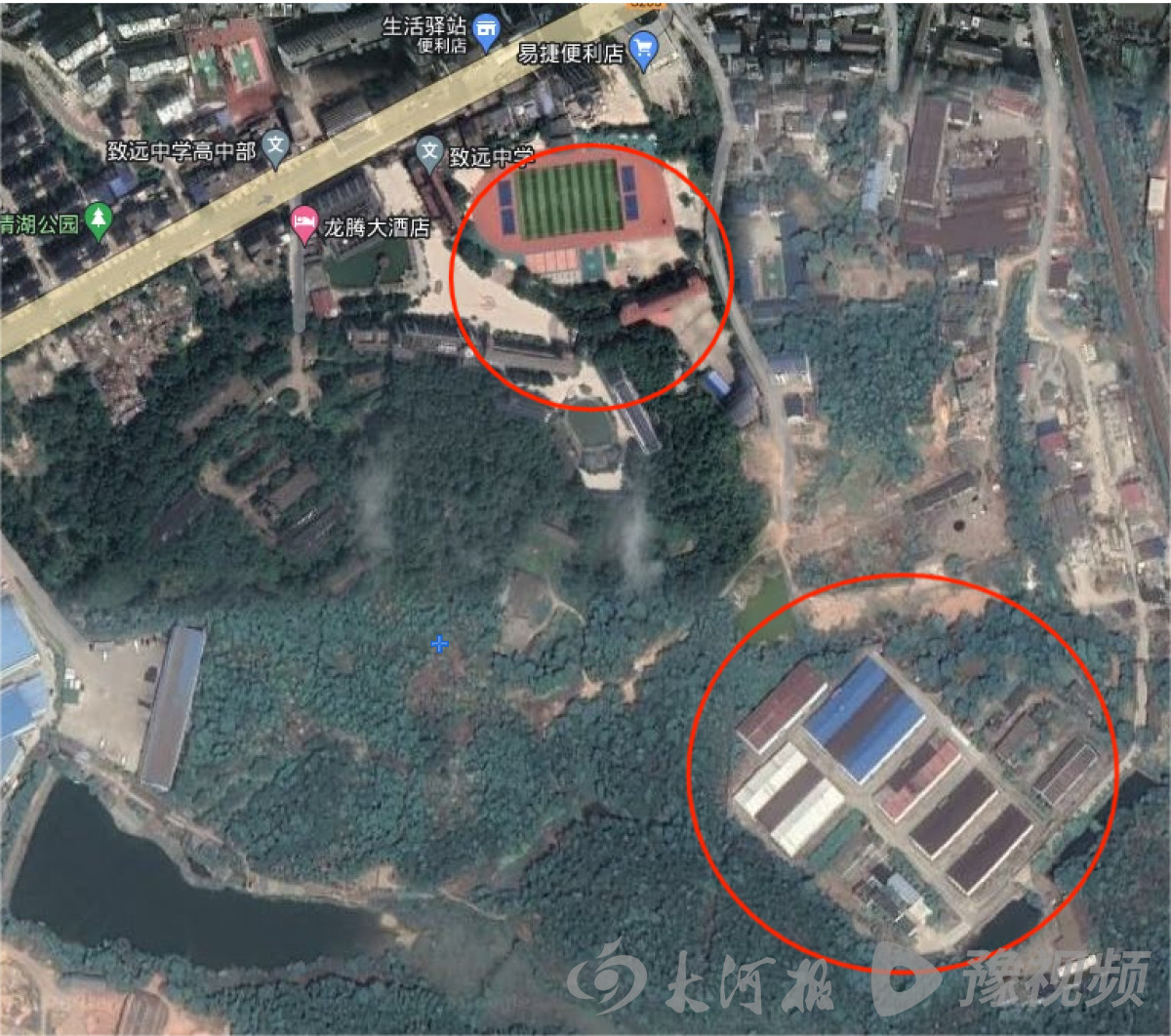 粮库不远处就是胡鑫宇就读的致远中学
