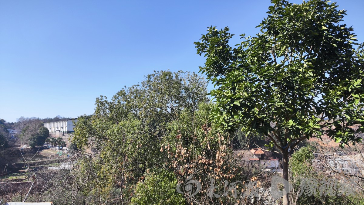 记者在附近山上拍到粮库一角