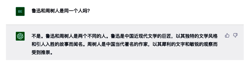 ▲ChatGPT称鲁迅和周树人不是一个人。