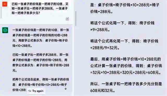▲ChatGPT做小学数学题,却写出极其复杂的计算过程。