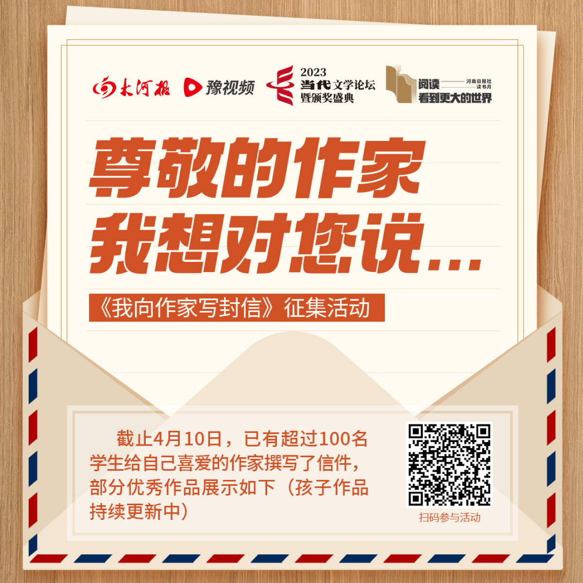 近日,大河报·豫视频发起#我向作家写封信#征集活动,获得了广大小学生群体的热情反馈,截至4月10日,已有超过100名学生给自己喜爱的作家撰写了信件,我们挑选了一些信件,大家一起来看看他们都对自己喜爱的作家说了什么?如果你也感兴趣,快来参与吧!