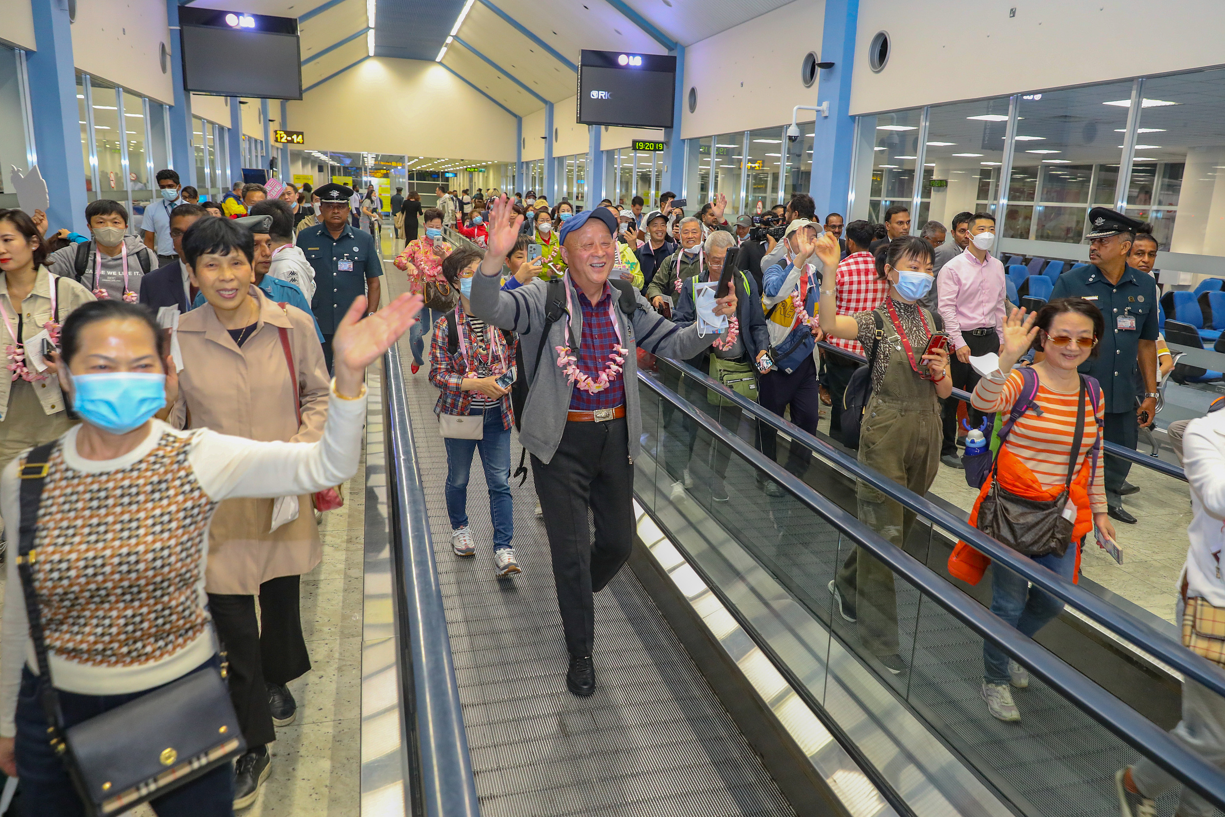 当地时间2023年3月10日,斯里兰卡卡图纳亚克,新冠防控政策调整优化后,前来旅游的中国游客。
