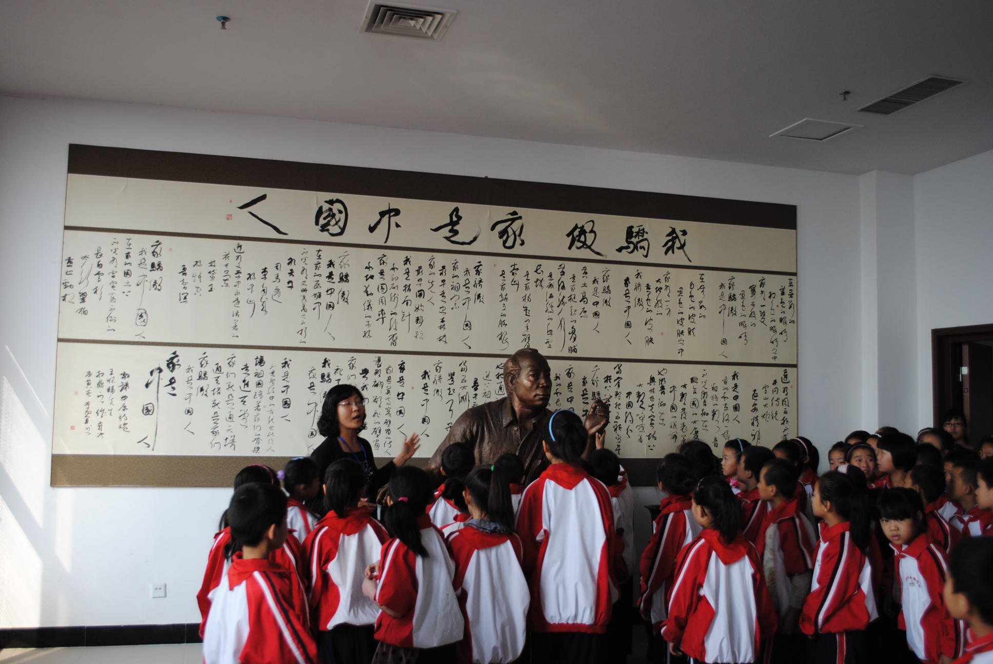 近百名儿童在图书馆工作人员的热情引导下参观,而后齐声朗诵王怀让创作的那首脍炙人口的《我骄傲,我是中国人》。