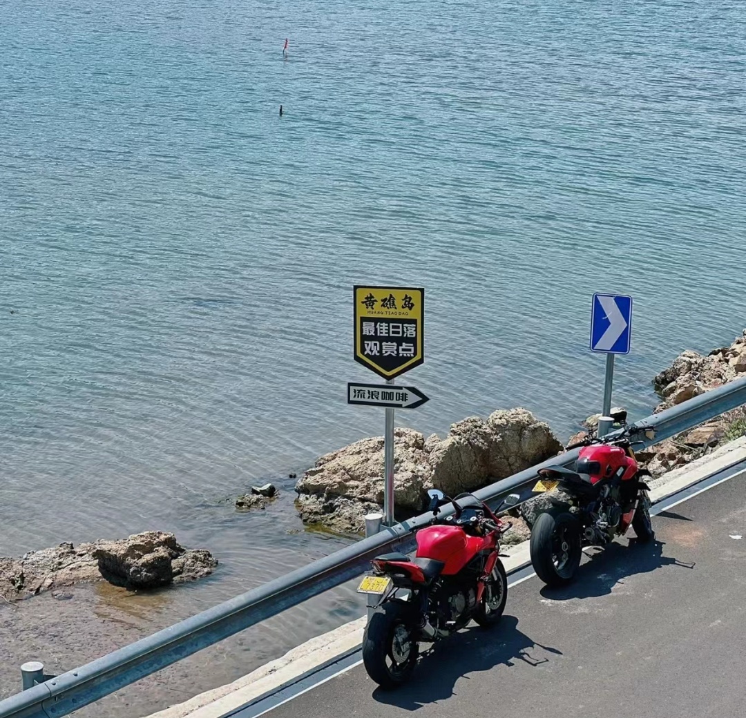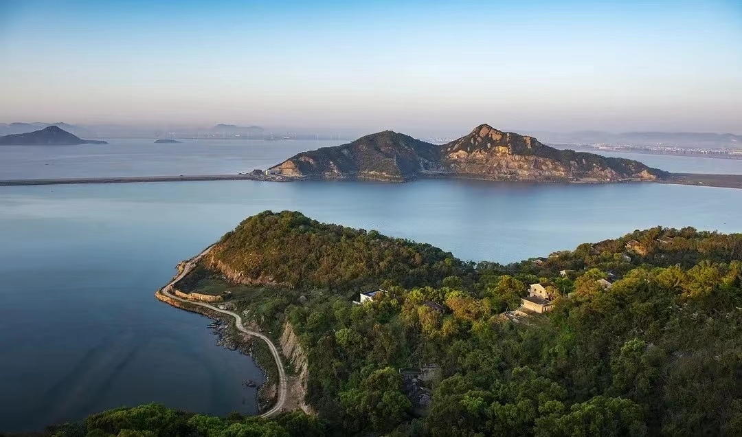 黄礁岛位于路桥区金清镇东偏南11公里的海上,西北和西南两侧分别靠近白果山、道士冠岛。三岛之间各相隔着约千米的水道遥遥相望,如今都已造堤相连,一半海涂已经形成了陆地,一半则成了美丽的蓝色海湾,新修的公路成为摩托车爱好者们打卡的天堂。